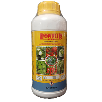 BONEUR 250 EC est un fongicide systémique avec une action préventive et curative à la fois. Il agit donc sur le champignon par contact direct ou par voie systémique à l’intérieur des organes de la plante.