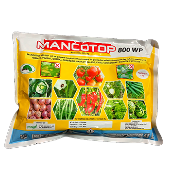 MANCOTOP 800 WP est un fongicide très efficace contre les principales maladies fongiques des cultures maraichères : tomate, piment, gombo, aubergine, haricot, laitue, chou, concombre, oignon, pastèque....