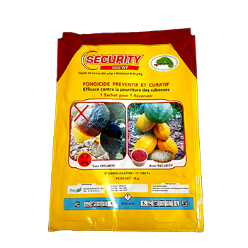 SECURITY 660 WP est un fongicide systémique et de contact à large spectre recommandé pour la lutte contre le champignon phytophthora responsable de la pourriture brune des cabosses et d’autres maladies fongiques des cacaoyers.