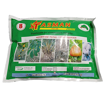 TASMAN est un herbicide total non sélectif, destiné au désherbage des mauvaises herbes graminées et dicotylédones dans de nombreuses cultures : Anacardier, Bananier, Hévéa, Palmier, Cacao et sur les jachères.